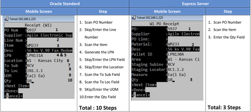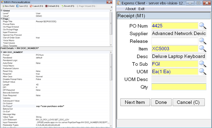 Express Server provides personalization capabilities to all Oracle WMS/MSCA mobile screens.